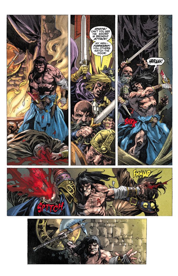 The Rebel Four spring their trap on King Conan, sending assassins to slay the barbarian monarch in his sleep! After waking from a strange vision, Conan has his back up against a wall and his enemies in front of him--right where he wants them. If these traitors want his crown, they'll have to take it! But even if Conan survives the assassination attempt, the evil wizard Thoth-Amon is back at full power and waiting for the perfect opportunity to strike and take the throne for himself!