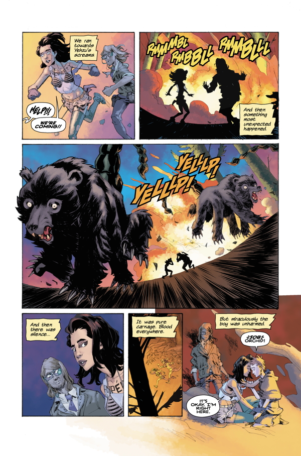 Orchid, Simon, and Yehzu meet a mysterious, forest-dwelling woman named Opal and hear the tale of General China's defeat at the hands of Tomo Wolfe. As Orchid struggles to find an outlet for her anger, Simon pleads for help from this experienced woman, whom he sees as a new and knowledgeable ally. Is this the turning point in the efforts of the uprising? Or another setback for a hopeless cause?