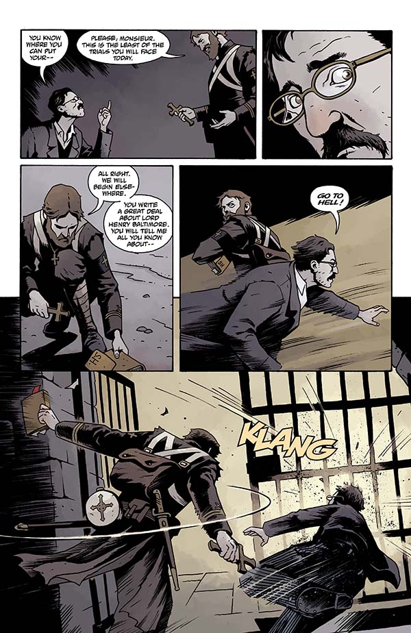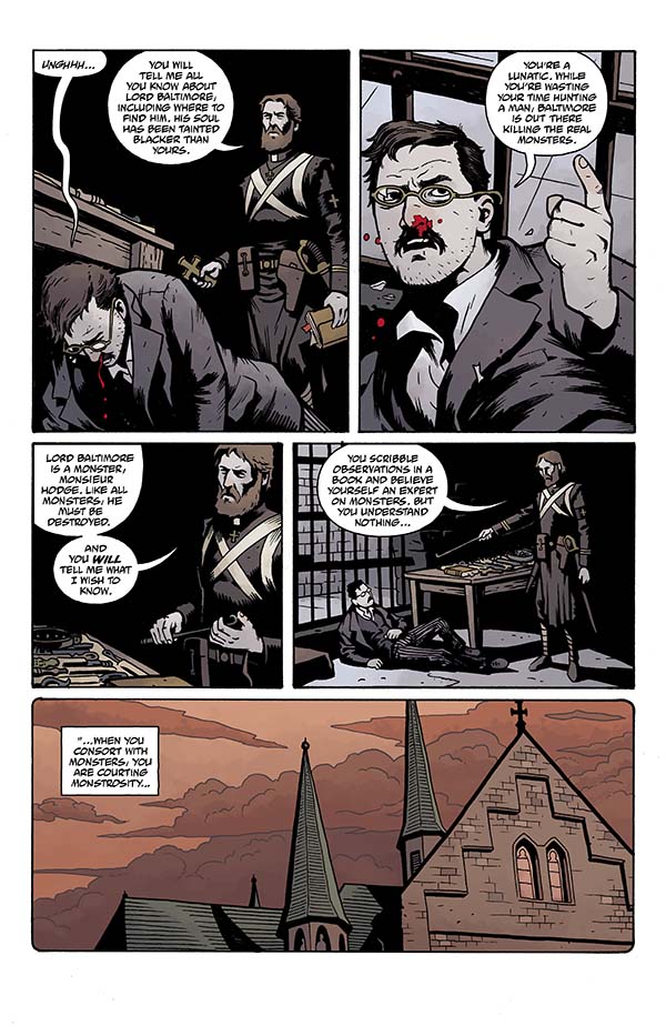 The sadistic Judge Duvic, who we’ve seen serving God’s vengeance on women and children, nearly has Lord Baltimore in his grasp, but first he has to face Baltimore’s last few friends in this doomed, war-torn world.