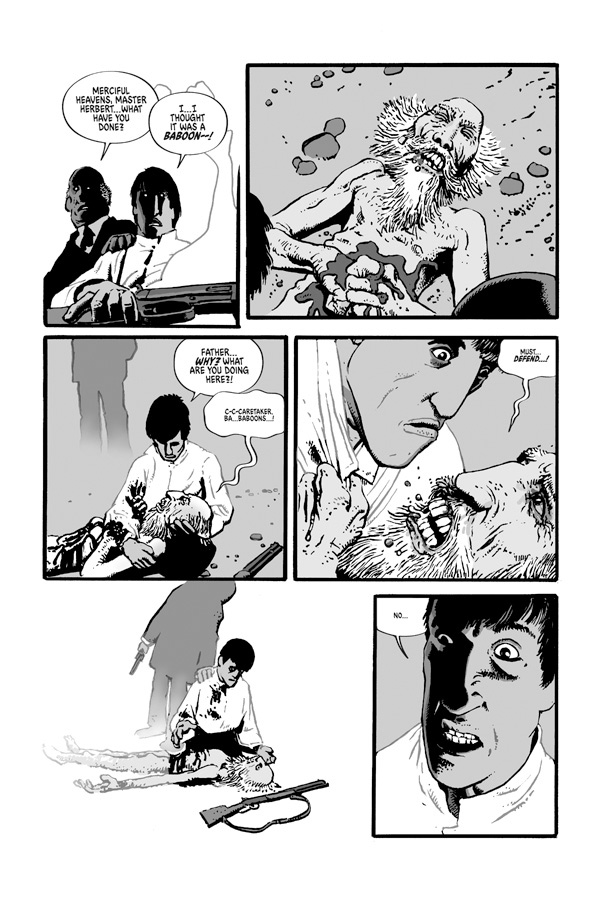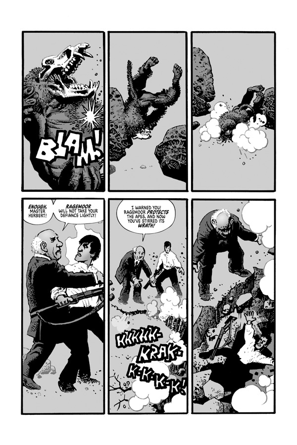 Ragemoor's mad owner gets caught in a deadly battle between a horrible race of worm men and the vicious apes that guard his castle!