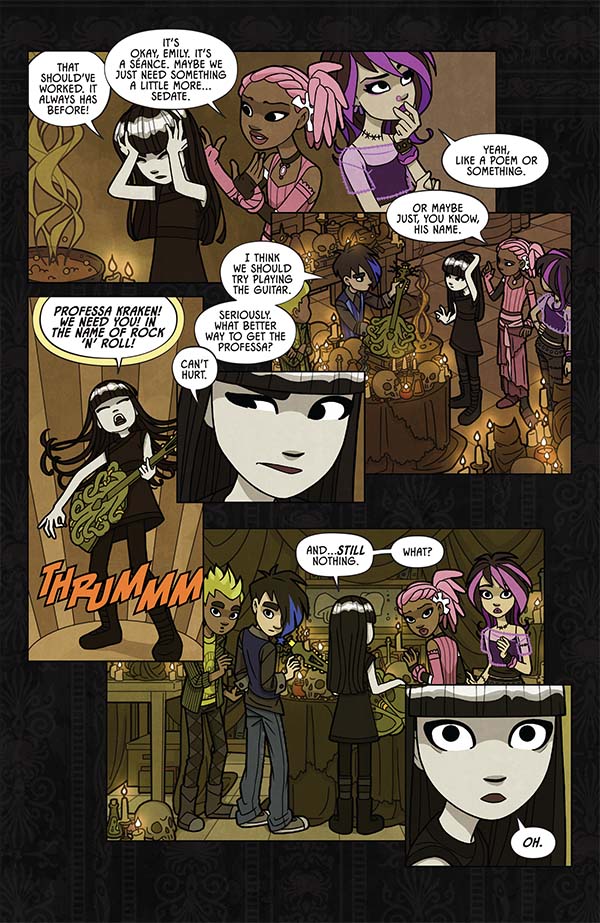 After winning the magical guitar and gathering other musicians, Emily should have everything she needs to start a contest-winning band. The sound is promising, and Emily’s got the perfect song to perform, but there are still a few more lessons about harmony to learn—and some freaky elements to add to the mix. Time to have a séance and evoke the spirit of a long-lost musical genius to ask for help! Join Emily and her new friends on a journey to the true heart of rock ‘n’ roll!