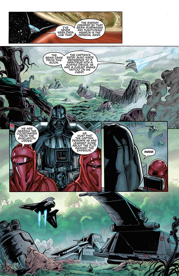 Darth Vader’s search for the culprits behind an assassination attempt on the Emperor leads to a shattered Star Destroyer floating lifeless above a mysterious moon. On the ground he finds no survivors—instead ancient ruins, and frightening inhabitants. All the while, a hunter follows, waiting for the moment to strike!