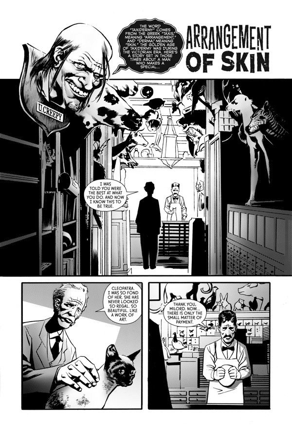 Uncle Creepy emcees an execrable exhibition from some of horror comics’ most talented creators! Paul Tobin and Juan Ferreyra share the tidings of a grim guardian angel, and J. Torres and Ron Salas mount some twisted taxidermy! Creeps unite!
