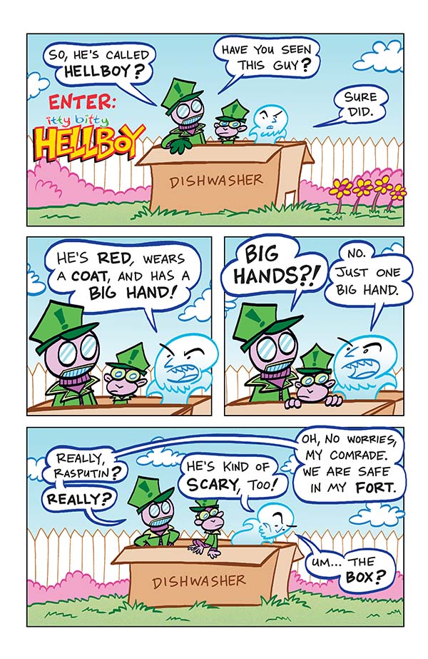 Who is Hellboy anyway? Why does he have such a big hand and what is it used for? Who's weirder, him or his friends? What is the B.P.R.D.? And what does chicken soup have to do with all of it? This and more answered in the debut issue, where BIG things happen to itty bitty Hellboy!