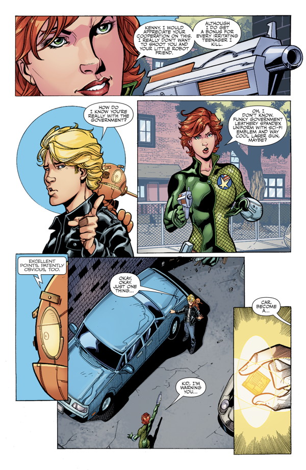 If, on your birthday, you could make a wish, any wish, before you blew out your candles, what would it be? On his eighteenth birthday, Kenny got something better than one wish. He was given alien technology that lets him create literally anything he can wish for! How about a flying robot or a life-sized T. rex? To keep it, and also stay, you know, alive, he’ll have to outwit the persistent government agent Claire Covert and a Nazi mad scientist. On top of that, when Kenny’s father is abducted by some old friends, Kenny will have to use every ounce of imagination to save him!