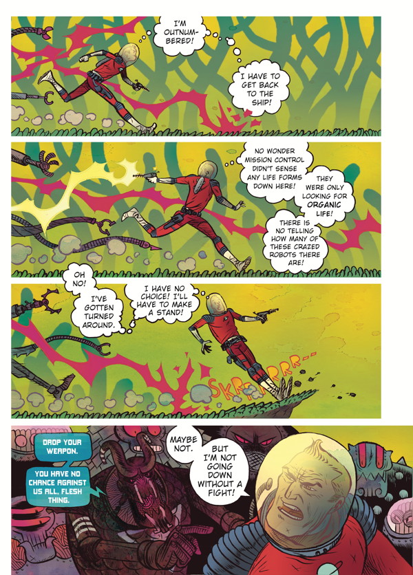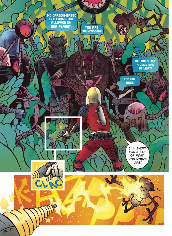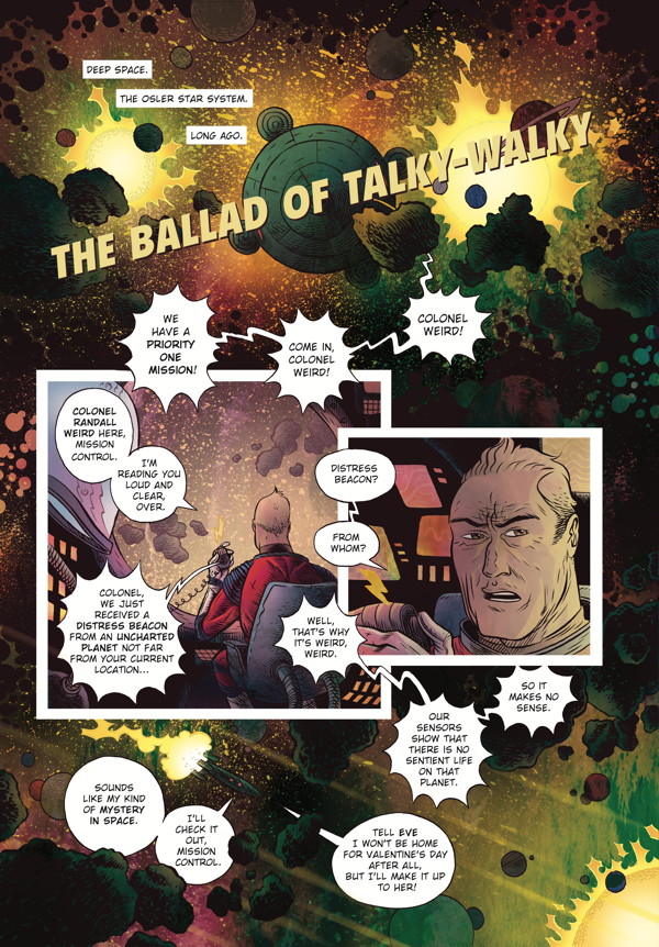 In the golden age of space exploration, Colonel Randall Weird was on the frontlines. In his interstellar travels he encountered many strange worlds and alien civilizations, but none more curious than the technological marvel that became his best friend: Talky-Walky! Guest artist David Rubin reveals her robotic backstory in this special issue of Black Hammer!