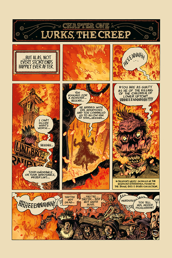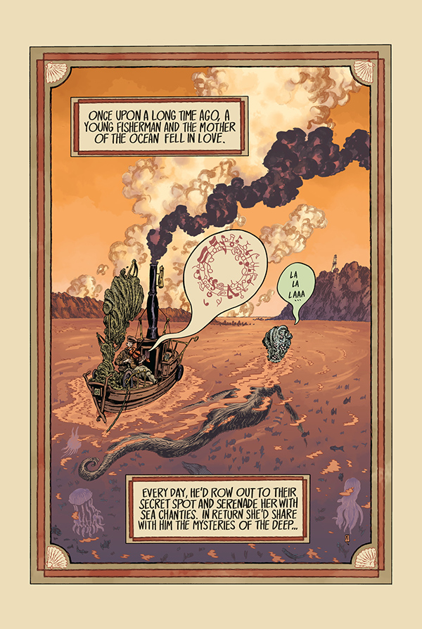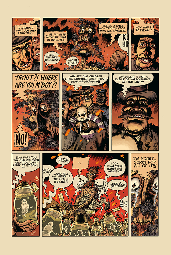 Blaming him for the loss of the children of lower Upton, the townsfolk burn down Giuseppe's turnip factory and run him and Trout out of town. Sick and distraught, the two have no other recourse but to travel across the ocean to Giuseppe's childhood village. Trout is lost along the way, and Giuseppe is forced to deal with his brother's meddling in order to find the mysterious little boy he's sworn to protect. Can Giuseppe find him before Trout meets his fate at the hands of the god of the sea?! And who is the shadowy figure trapped in a giant shark egg who is struggling to keep Trout alive?! One thing's for certain: for better or worse, Trout will never be the same again.