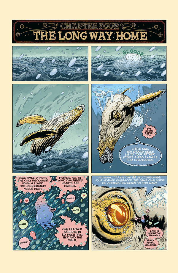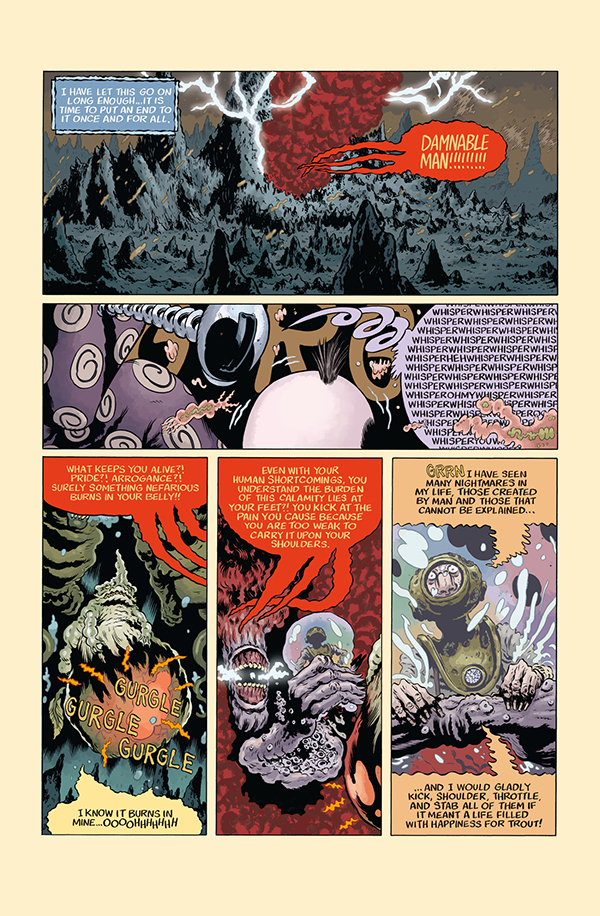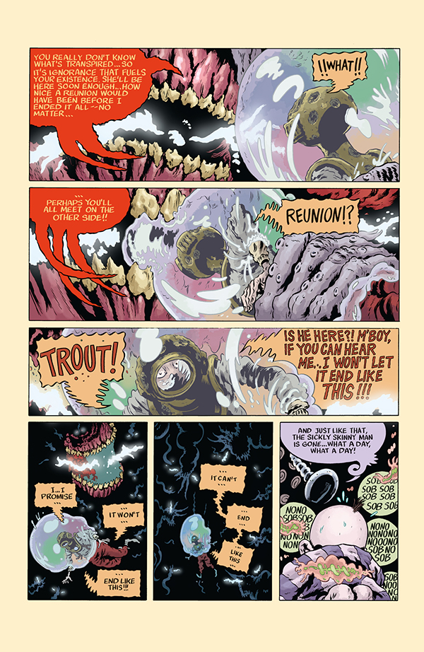 Trout's harrowing adventure comes to an earth-drenching conclusion. A huge tsunami has wiped out Giuseppe's village and along with it any hope he has of rescuing Trout. But a menagerie of fantastical sea creatures comes to the rescue and help our two heroes battle their past and embrace their future.