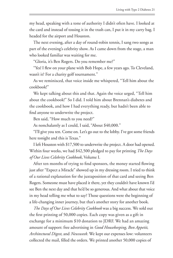 With dietary and lifestyle choices fueling a rise in type 2 diabetes, coping with this treatable disease has become a priority for millions. Unfortunately, although type 2 diabetes can be treated, the specifics of how to effectively combine insulin, diet, and exercise are often difficult to master. Gloria Loring-a regular contributor to the Diabetes Wellness Letter as well as a famous singer, songwriter, star of the TV drama Days of Our Lives, and mother of a diabetic child-co-authors with Dr. Timothy Gray to clearly explain how to identify and live with type 2 diabetes. The authors draw on up-to-date research and first-hand experiences to create a book that is both easy to follow and empathetic toward those with the disease and their loved ones. Included are self-assessment tools, useful to the estimated 5.2 million Americans who are unaware they have the disease, as well as step-by-step instructions on managing diabetes.