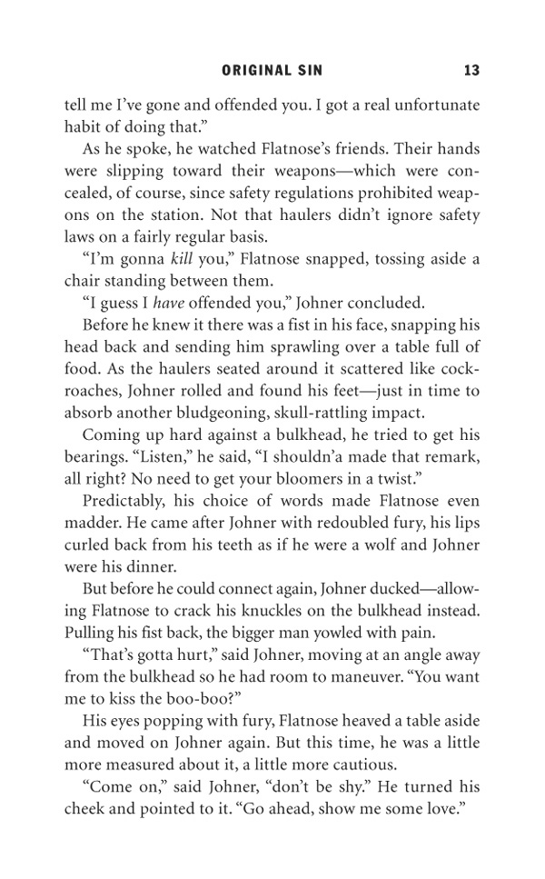 In 1979, science fiction and horror were brought together in director Ridley Scott's classic film Alien. The film follows the crew of a space cargo-ship, the Nostromo, who land on a hostile planet in response to a faint SOS only to discover an abandoned ship with a ravenous alien on board. Alien inspired three movie sequels, and now Aliens: Original Sin expands further on this classic story, bringing back characters like Ripley 8, the clone of Lt. Ellen Ripley, and android Call. It also sorts out unanswered questions from the movies and raises entirely new ones. Was it just coincidence that the Nostromo happened to pass by the desolate planet? Why was the alien on the crashed ship in the first place? The answers, along with intense action, chilling horror, and even deeper questions await in suspense virtuoso Michael Jan Friedman's Aliens: Original Sin.