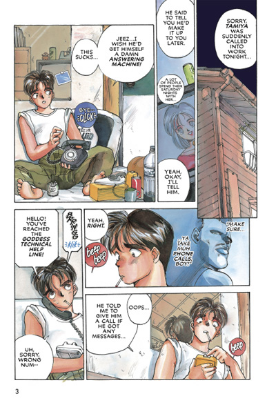 Alone in his dorm on a Saturday night, Nekomi Tech's Keiichi Morisato dials a wrong number that will change his life forever-reaching the Goddess Technical Help Line. Granted one wish by the charming young goddess Belldandy-a wish for anything in the world-Keiichi wishes she would stay with him always! Complications are bound to ensue from this; the immediate first being the new couple getting tossed out of the dorm-it's males only!