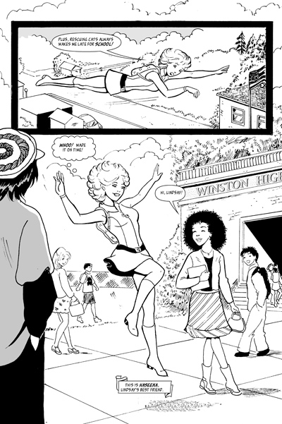 Two feature-length stories in one volume! Video games can get too realistic, as the flying teenager, GoGirl! discovers in "Prisoners of the Machine," when she and her friends find themselves trapped inside a computer, menaced by giant anime-robots! And in "Double Trouble," GoGirl!'s archenemies create a robot that looks just like her, except that it has the mind of a master criminal! How can our heroine convince the cops that she didn't rob that bank, when everyone saw her do it? Plus, GoGirl!'s sidekick, Haseena, tired of always being rescued by the flying teen, takes up sleuthing herself in "Haseena Ross, Girl Detective."