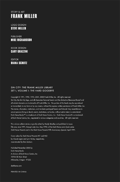 • Set I includes Sin City vols. 1-4: The Hard Goodbye, A Dame to Kill For, The Big Fat Kill, and That Yellow Bastard.