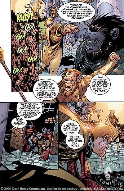 Anything that could have possibly gone wrong since The Human War did. The human rebel Esau and the ape leader Seneca are facing a trial for crimes against the ape state. Once triumphant, they now await a hangman's noose. Never in their wildest dreams did they think they would be rescued mere seconds from certain death by the once great gorilla warrior, Attar! But Attar has an ulterior motive. Usually reclusive, he has received a cryptic message that could finally lead him to his friend, the long-disappeared chimp, Ari. Soon hunted by the implacable Commander Kharim, Esau, Seneca, and Attar head deep into the uncharted wilds where they find a besieged outpost of apes and humans, masters and servants, fighting side by side in a battle with a primal, ancient evil...one that reveals the dark side to the origins of ape and human alike! Collects the first three issues of the ongoing series.