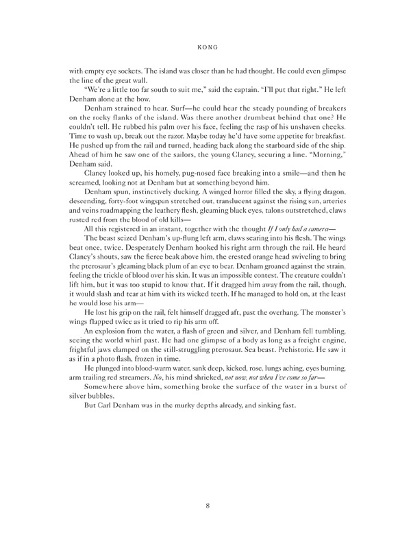 While the Storytellerís tale is sometimes confirmed, it is often refuted by the sights and experiences of Jack Driscoll. He stumbles upon pieces to Skull Islandís mysterious history as he struggles to survive the various threats of the island and find his friend. When Driscoll and Vincent reunite, their experiences combine to determine just who the Storyteller and Kara are, what became of Carl Denham, the story behind King Kong and clues to the origins of Skull Island itself. As a result, their lives are all changed forever.