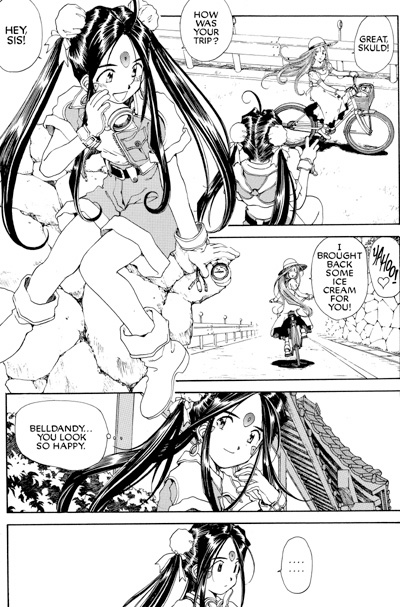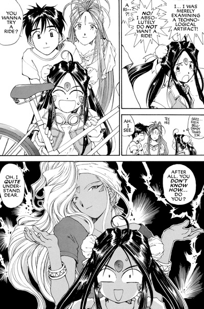 It's the latest volume of one of America's most popular Japanese comics! Several favorite characters face new challenges in this brand-new collection. Skuld, the youngest of the three goddesses living with college student Keiichi, may be a whiz at inventions, but her immaturity usually gets the better of her. Can she learn the simple joy of riding a bicycle -- and deal with her first crush on a boy? Campus queen Sayoko doesn't believe in goddesses -- but when she's possessed by a demon, Belldandy and Urd have to convince her they have powers...without blowing their secret! Also, readers are introduced to the tough-but-sexy Chihiro Fujimi, former head of the school motor club! She's back in town, and nothing will be the same!