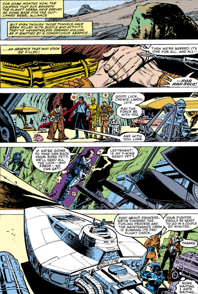 Dark Horse Comics presents the latest volume of Star Wars: A Long Time Ago... featuring classic Star Wars stories not seen in over twenty years! Originally printed by Marvel Comics, these stories have been meticulously re-colored and are sure to please both new and old Star Wars fans. Fool's Bounty collects issues 68 to 81 of the original Marvel run, along with Star Wars Annual #3. Most of these stories take place after The Empire Strikes Back, as Han Solo's friends continue to search for their lost scoundrel, and this volume ends with Marvel's first story set in the Return of the Jedi era -- "Jawas of Doom." Lando Calrissian is hilariously disguised in "The Big Con," a captured Princess Leia must escape torment in "Death In The City Of Bone," and C-3PO gets his mechanical heart broken in "Ellie." Also highlighted are several rare Star Wars pinups, and an introduction by James Kochalka!
