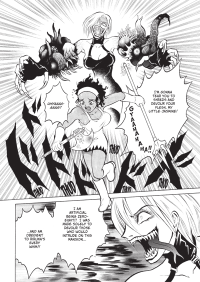 The battle between Reiko and her twin sister, Riruka, who is bent on controlling the world with a slave-army of zombies, reaches a blood-dimmed crescendo. Twins they may be, and while related by blood, there aren't two people out for each other's throats more than Reiko and Riruka. Only one of the two will be left standing in this ultimate gore-soaked splatter showdown!