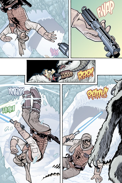 Take the events and characters from one of the classic Star Wars films, throw in one happenstance, mishap, or technical glitch beyond the characters' control, and watch how that changes everything. In Dark Horse's first foray into Infinities (A New Hope), Luke Skywalker's valiant torpedo attack on the Death Star failed due to a faulty detonator -- an event no one could have foreseen -- and the Rebellion was dealt a debilitating setback. In Infinities -- The Empire Strikes Back, Han Solo's desperate attempt to locate his friend Luke in the icy wastes of the planet Hoth is thwarted when the tauntaun he's riding succumbs to the cold while Han is still a mile from Luke's location. Han arrives too late, barely in time to hear Luke's dying words about Jedi training and the planet Dagobah...
