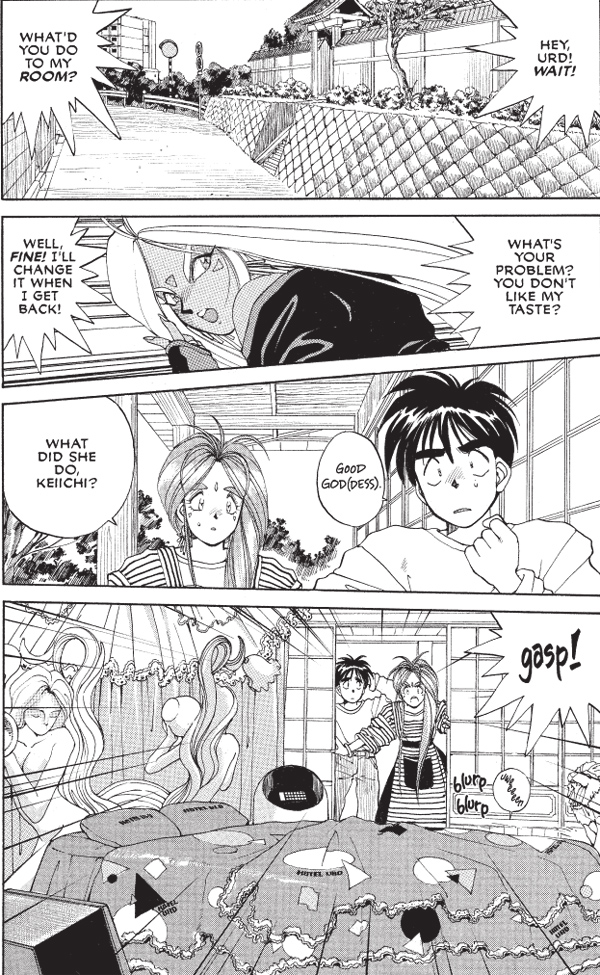 Ever since a cosmic phone call brought the literal young goddess Belldandy into college student Keiichi's residence, his personal life has been turned upside down, sideways, and sometimes even into strange dimensions!