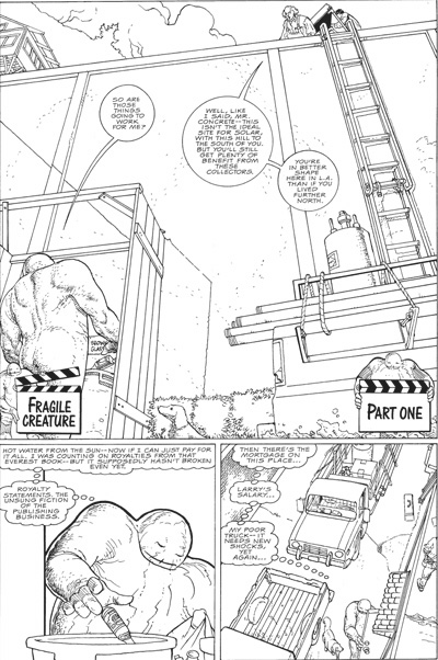 When you're seven-feet plus of walking, talking stone, you're bound to draw the media spotlight, especially when you live in Tinseltown. Concrete's celebrity status is sometimes a pain in the buttress . . . but it does bring the occasional paycheck gig. When the producer of a low-budget science-fiction film approaches Concrete to use his prodigious strength to help save money on the film's FX budget, the siren call of Hollywood draws Concrete like a moth to a flame . . . a seven-thousand-dollar-a-week flame, that is.