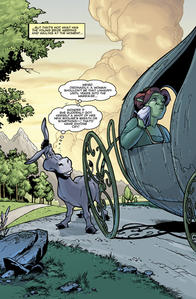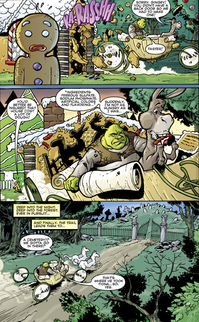 The world's most lovable ogre is back this time in COMICS! Join Shrek, Donkey, and the gang as they embark on several hilarious madcap adventures including a chase to rescue Fiona from Farquaad's henchman Thelonius on the evening of her honeymoon and an encounter with a gingerbread house gone rancid and its witchy owner! Written by master scribe Mark Evanier (Groo) and illustrated by Ramon Bachs and Raul Fernandez (Star Wars), Shrek is sure to please readers of all ages. Collecting the three-issue miniseries.