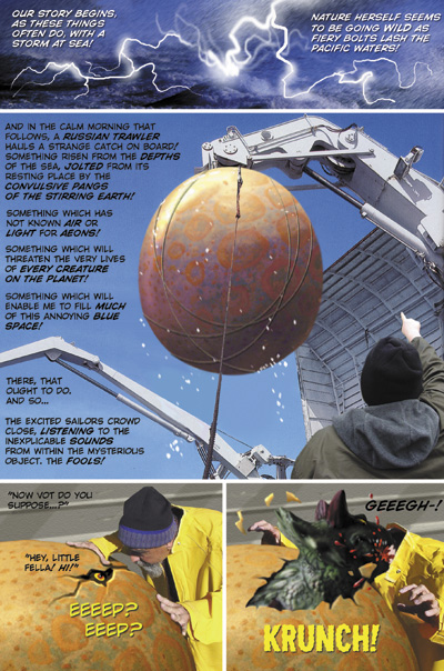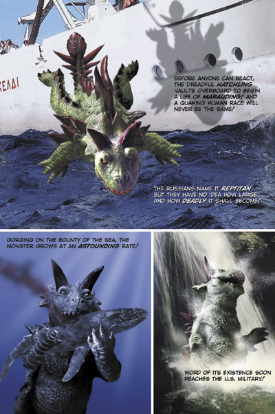 While employing the time-honored european"fumetti" format, this book goes light years beyond that simple approach. Custom-sculpted models, costumed actors, and mind-boggling computer-generated "special effects" come together to create a dynamic visual storytelling format heretofore unseen in graphic novels. Von Sholly's extensive experience working on countless sci-fi and horror-genre films (The Mask, Darkman, The Shawshank Redemption, The Green Mile, Mars Attacks etc.) as well as his experience as a Disney animation artist and conceptual designer come together to unveil a truly unbelievable leap in visual storytelling.The stories themselves run the gamut from tongue-in-cheek lampoons of '50 drive-in movies to gut-wrenching horror in the Lovecraft tradition.