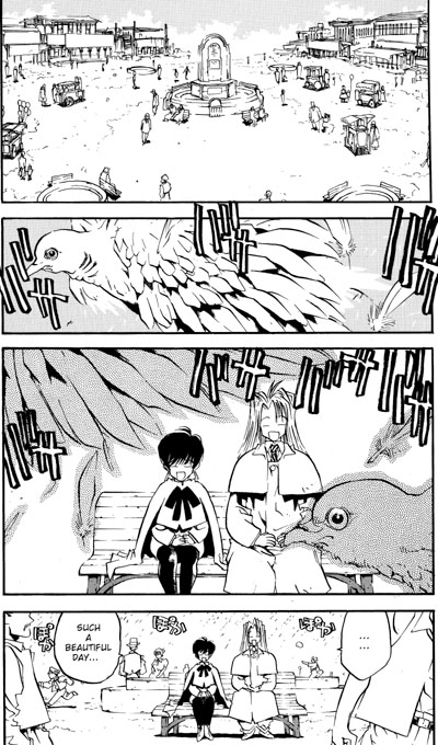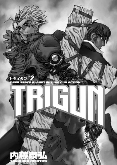 Dark Horse continues it’s parade of new manga with the second, super-fat volume of Trigun! Set in some kind of post-apocalypse western future, Trigun continues to knit a goofy yet mysterious story about a nice-guy gunslinger with a dangerous past and a huge bounty on his head. Everyone is after Vash the Stampede, but no one can put a bullet in him. Adding to the comedy is the pair of ladies working for an insurance company who must put a stop to Vash’s destruction, though they certainly don’t believe this amiable prankster is the vicious destroyer. It’s a fun read, and super thick, packed full of silliness and action.
