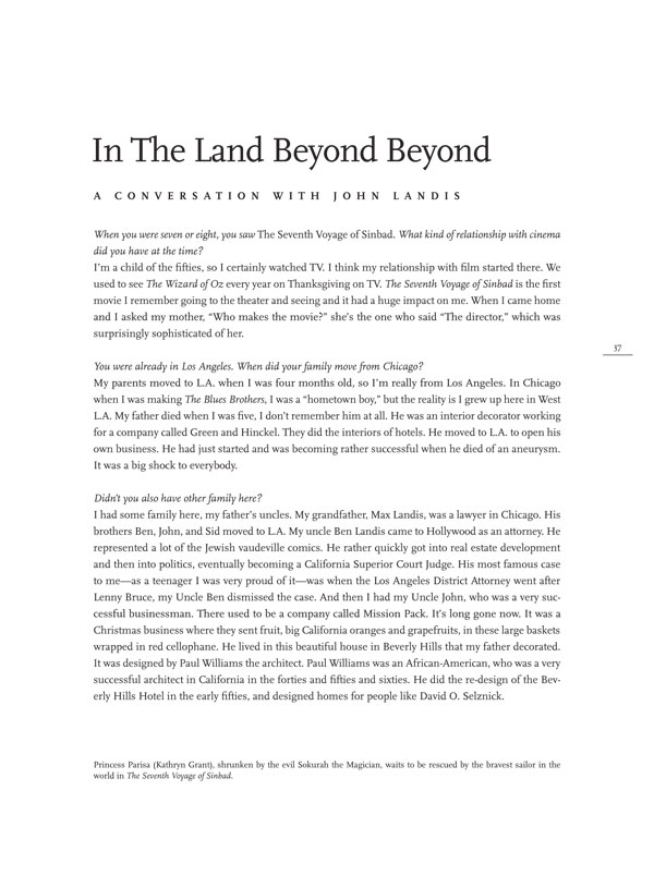 Contributors include Guillermo Del Toro, David Cronenberg, Frank Oz, Sam Raimi, Costa Gavras, B.B. King, Dan Aykroyd, Aaron McGruder, Elmer Bernstein, Rick Baker, Jamie Lee Curtis, Christopher Frayling, Harold Ramis, and many more. Lavishly illustrated with photographs, production and ad art, many never before published from Mr. Landis's personal collection.