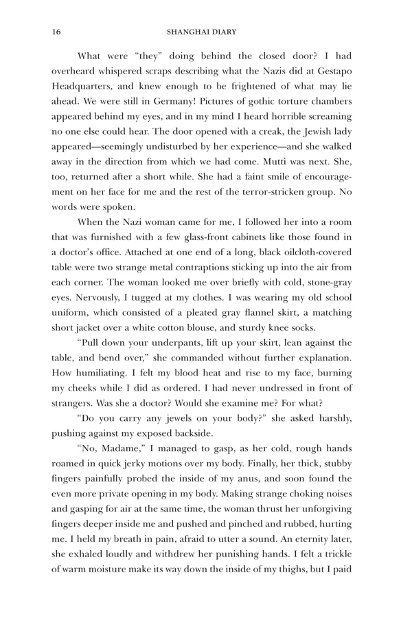 By the late 1930s, Europe sat on the brink of a world war. As the holocaust approached, many Jewish families in Germany fled to one of the only open port available to them: Shanghai. Once called "the armpit of the world," Shanghai ultimately served as the last resort for tens of thousands of Jews desperate to escape Hitler's "Final Solution." Against this backdrop, 11-year-old Ursula Bacon and her family made the difficult 8,000-mile voyage to Shanghai, with its promise of safety. But instead of a storybook China, they found overcrowded streets teeming with peddlers, beggars, opium dens, and prostitutes. Amid these abysmal conditions, Ursula learned of her own resourcefulness and found within herself the fierce determination to survive.