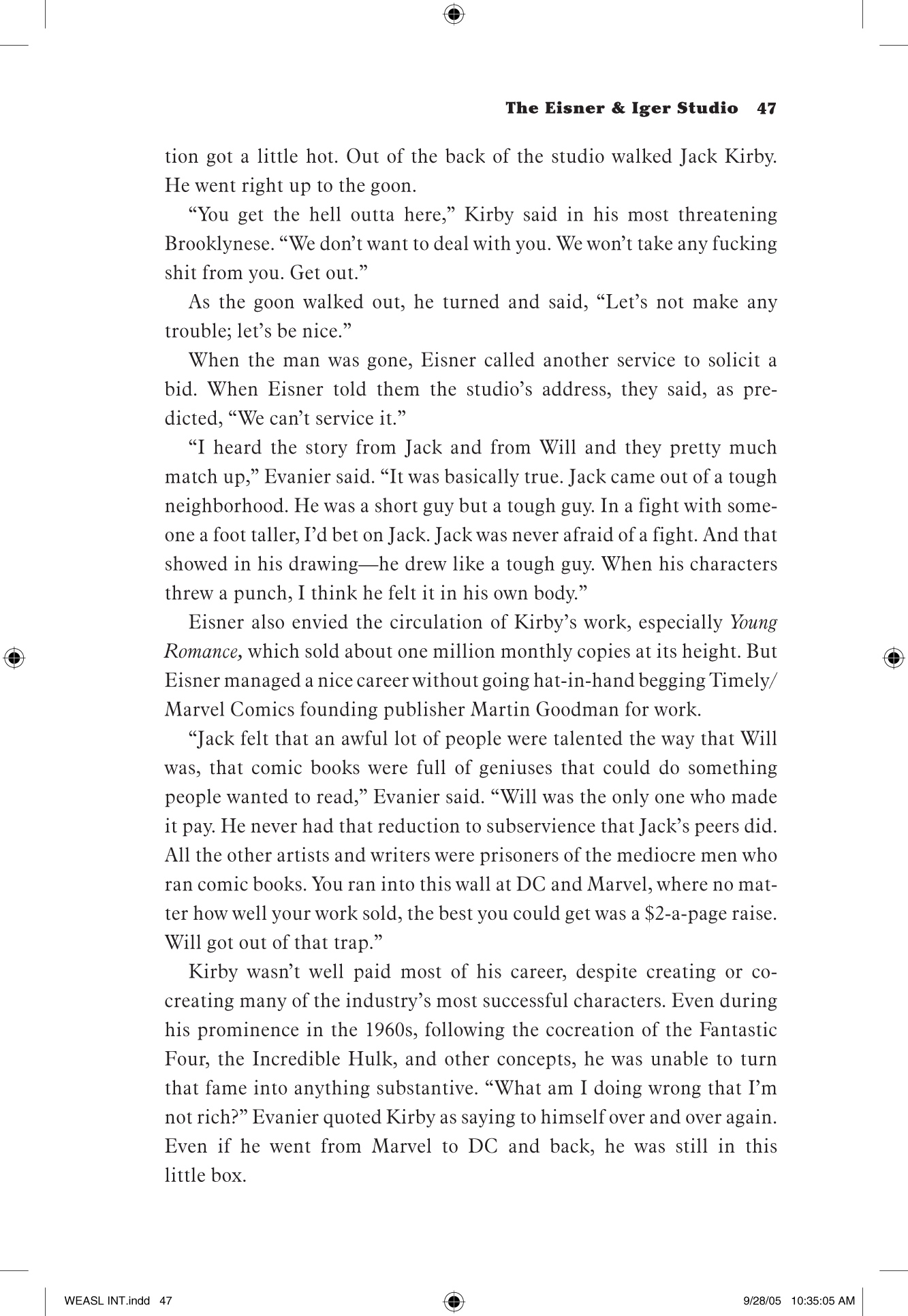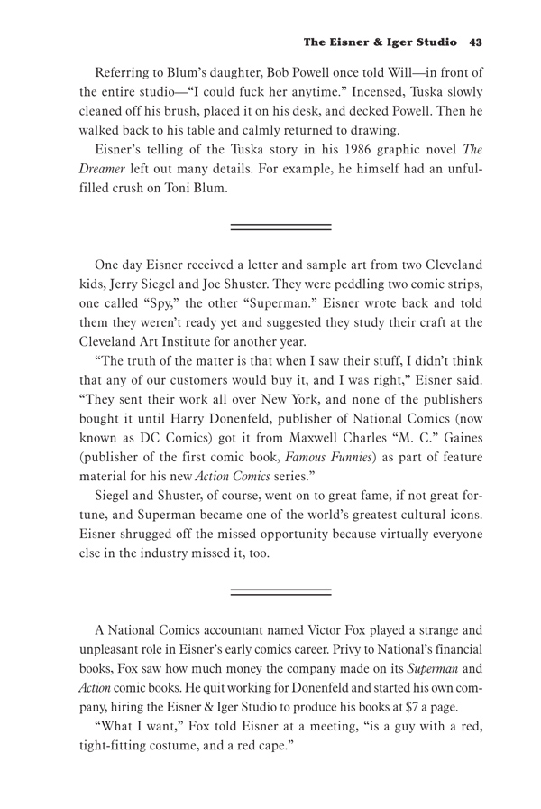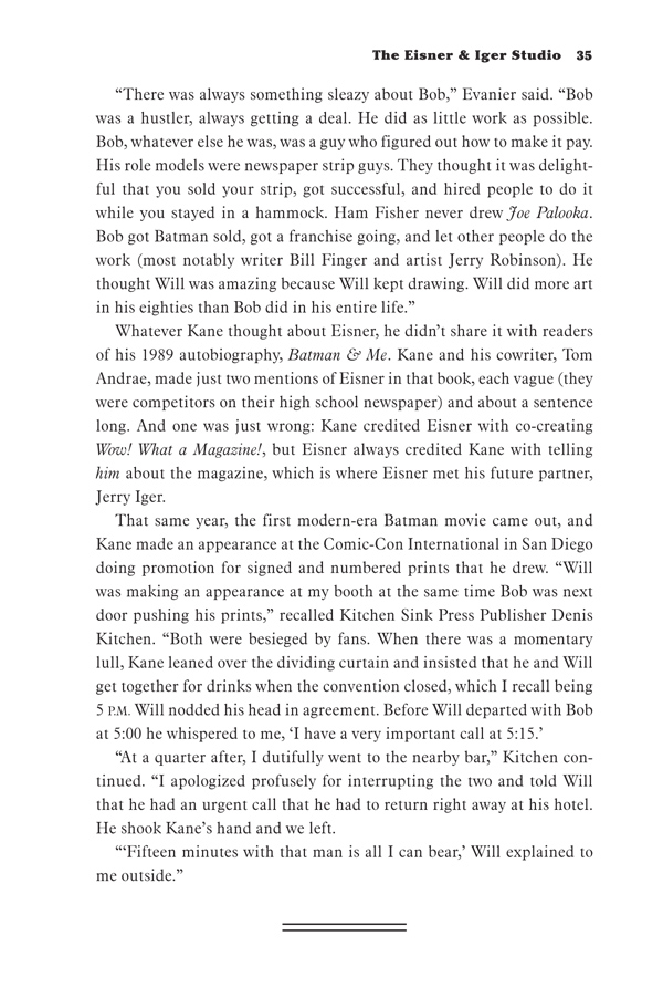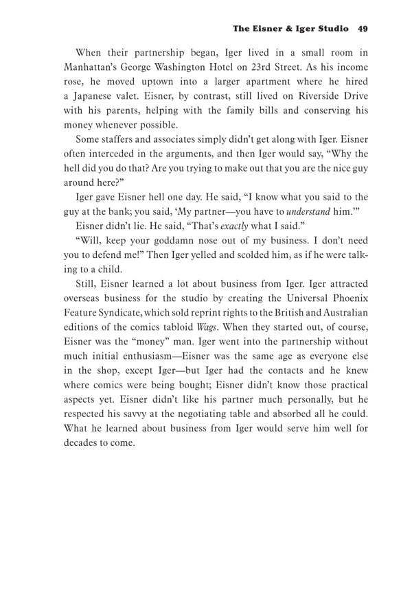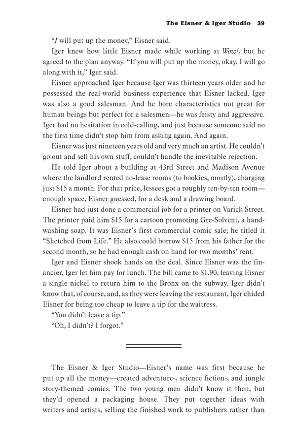 Author Bob Andelman spent almost three years interviewing Eisner, researching his life and work, and interviewing his friends, family, and the creative talents he inspired throughout the twentieth century. He recounts Eisner's personal and professional life in dramatic detail.