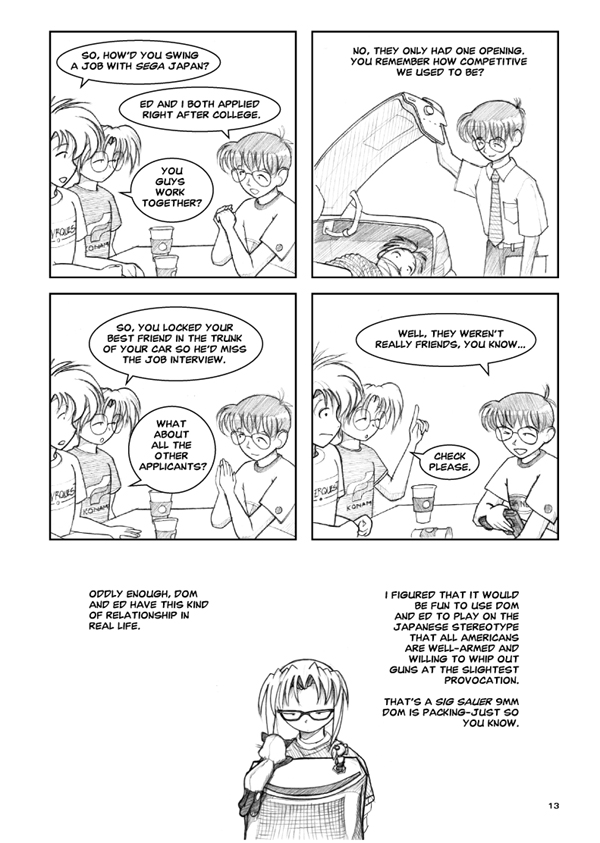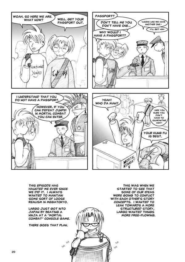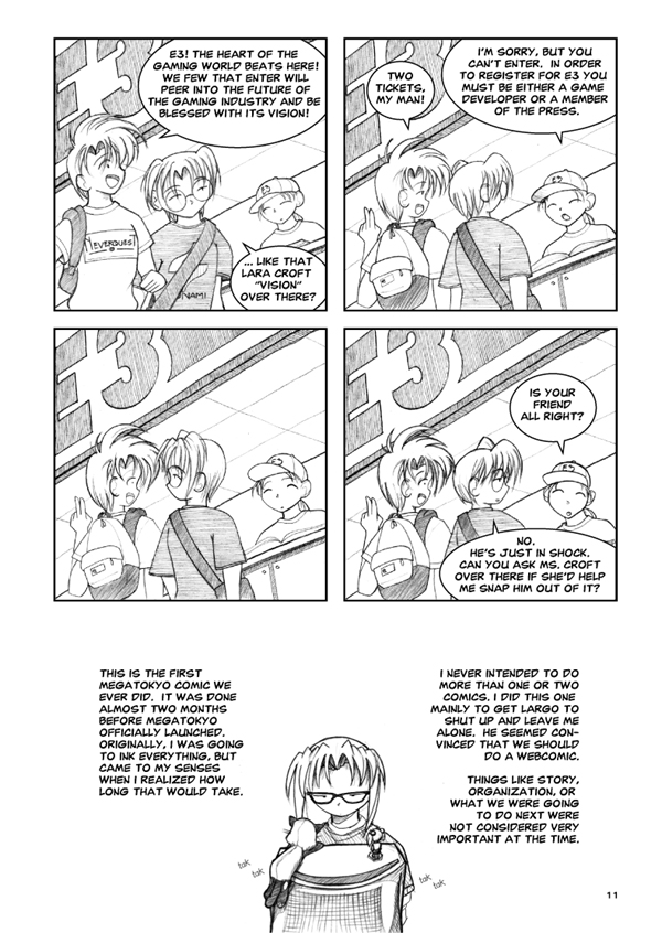 This re-issue of the highly successful Megatokyo Volume 1 brings fans a new and revised version of the book with improved print quality and a larger trim size. This book will contain all of the comics from Chapter 0 as well as the running editorial comments featured in the original release. Exclusive to the Dark Horse re-issue will be additional drawings, historical notes, and selected rants from this first developmental year of the Megatokyo webcomic.