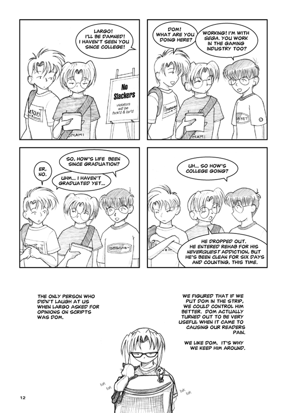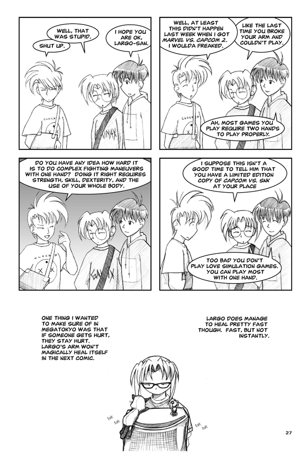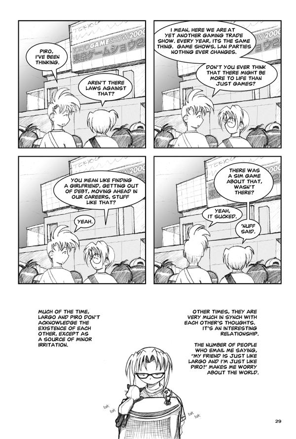 "Unlike many American "manga" creators, Gallagher understands that creating "manga" involves more than just aping an art style. Megatokyo is filled with quirky, interesting characters and the kind of loopy humor that makes Love Hina and Slayers so popular; and its online popularity provides a built-in audience for Megatokyo graphic novels."