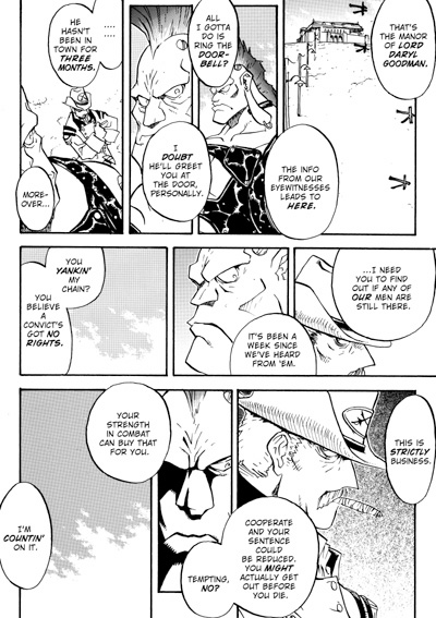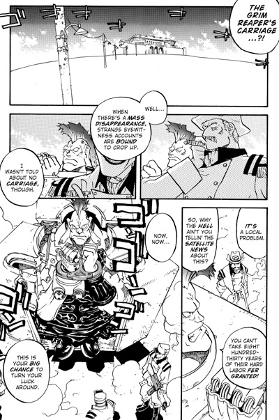 In the first volume of Trigun Maximum, we caught up with Vash and watched him jump back into service for Peace and Love! But now the action really begins. Remember the Gung-Ho Guns? That modge-podge group of assassins born and bred to kill Vash? Well, theyíre the ones whoíre still alive and are still trying to kill him, and in Trigun Maximum volume 2, weíll see the beginning of a whole new set of worries for our gunslinging mysterious nice guy. See the whole menagerie of freaky Gung-Ho Guns come after Vash in lots of crazy ways. The fun is really getting rolling in Trigun Maximum, taking you way beyond the anime and into new, dangerous territory.