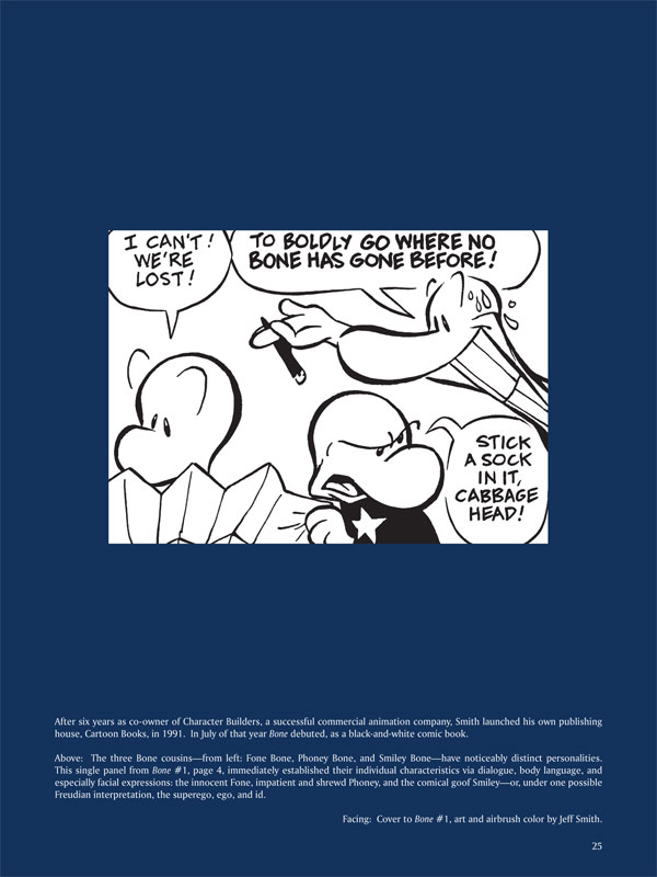 Bone is an international publishing sensation with hundreds of thousands of loyal readers and no end in sight to its growing popularity. Now, for the first time anywhere, see the homemade comics, sketches, and grand plans that set this masterpiece of literary fantasy in motion. From there, take a tour through piles of promotional art, holiday cards, and pivotal storytelling moments from the revolutionary self-publishing years, where Bone went from "the little comic that could" to an industry leader that changed the face of comics. Finally, revel in the wonder of Bone as a complete 1300-page graphic novel, a work for the ages, filled with comedy and tragedy and adventure for generations to come.