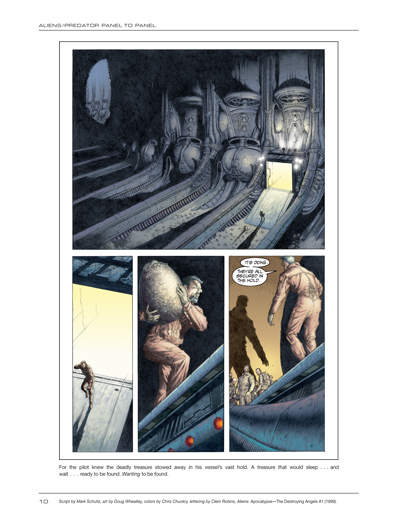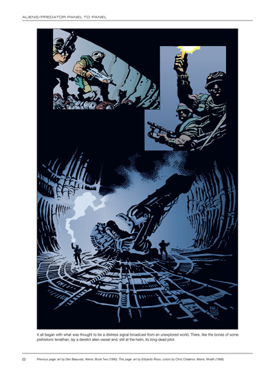 Aliens/Predator Panel to Panel showcases page after page of some of the most compelling artworks ever seen in graphic fiction, stunning visions by John Bolton, Dave Dorman, Mark Schultz, Richard Corben, Mike Mignola, Doug Wheatley, Arthur Suydam, Mark A. Nelson, Alex Maleev, Den Beauvais, Glenn Fabry, Jon Foster, David Michael Beck, Sam Keith, Doug Mahnke, and many, many more.