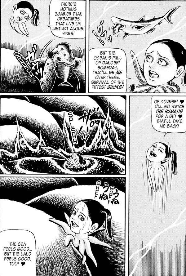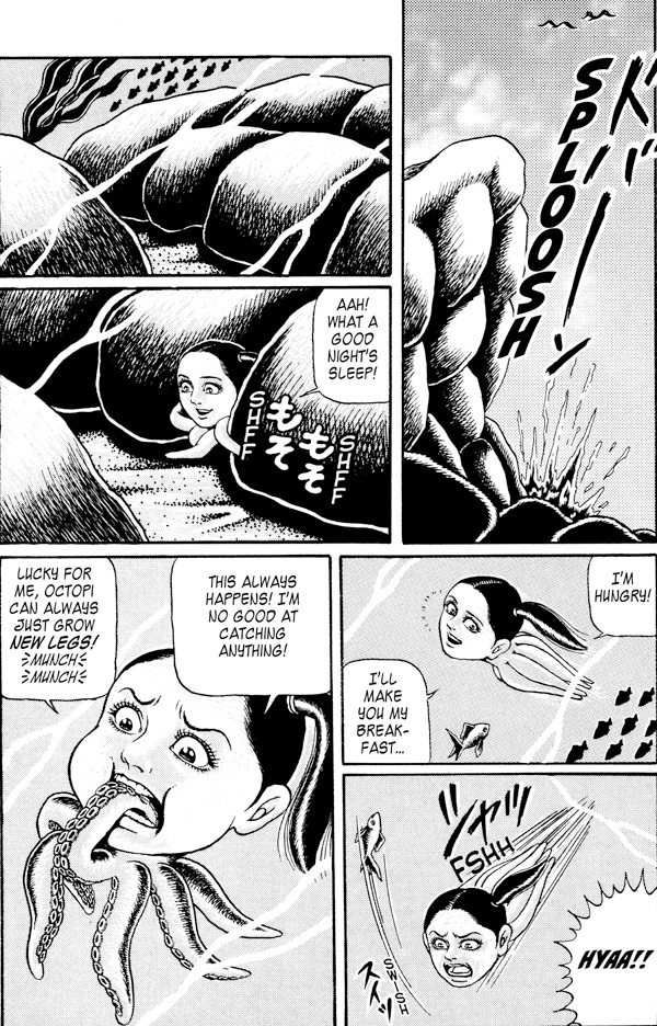 Teenage monsters lose their hearts and heads in a relentlessly gory collection of dark humor and horror! Carving a comical niche in modern horror manga, Toru Yamazaki's Octopus Girl serves up the most disgusting dishes of heartbreak and revenge found on land or at sea. Have a side order of nervous laughter with your main course of bloodcurdling fear, some gore with your teen angst, and some killer instincts with your kawaii! These shocking vignettes will hypnotize fans of the macabre and the absurd, as intestines, eyeballs, and fluids of all sorts shoot enthusiastically across Yamazaki's pages!