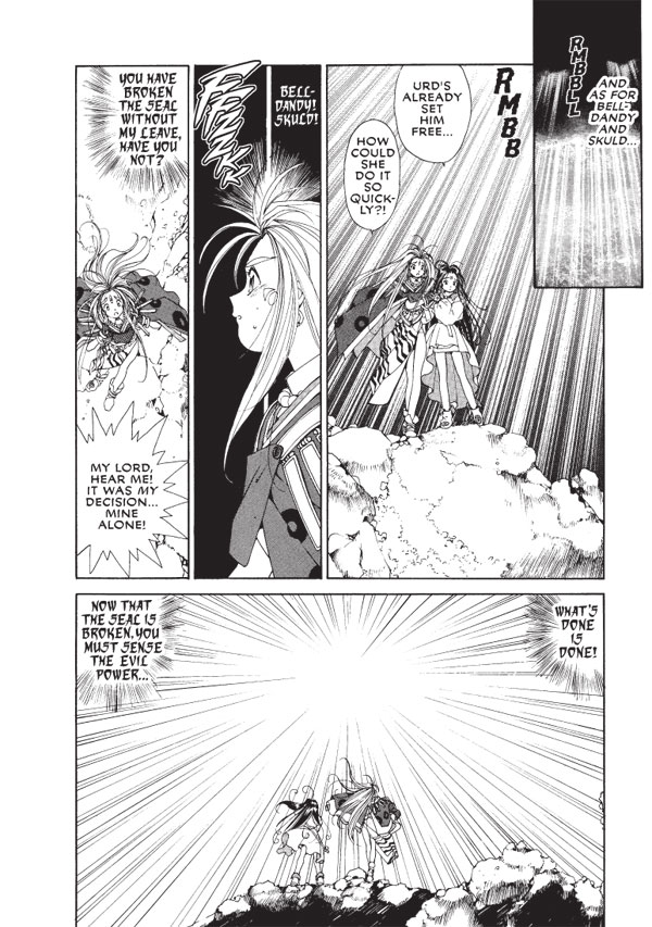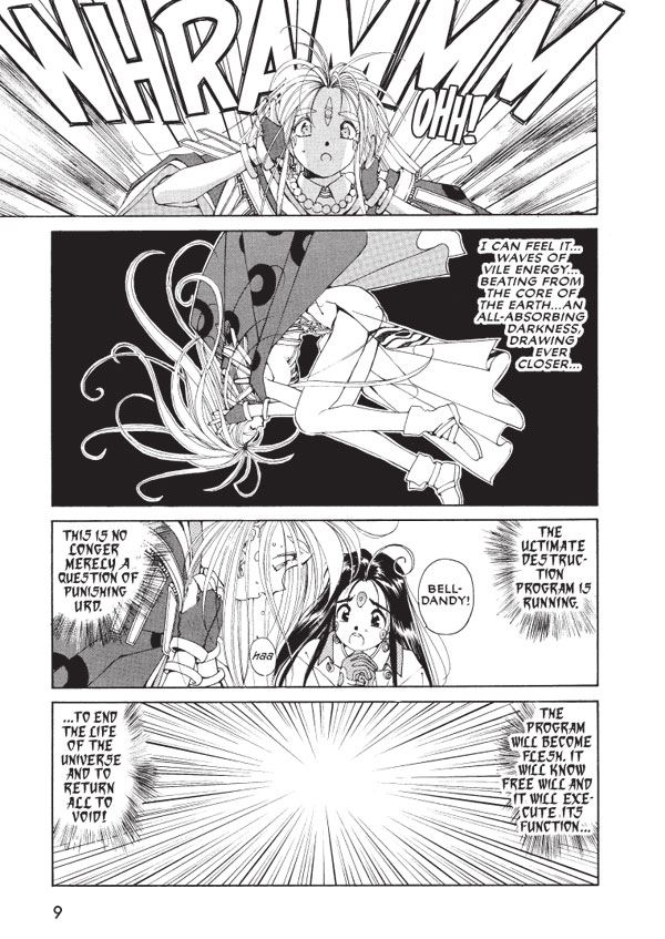 Ever since a cosmic phone call brought the literal young goddess Belldandy into college student Keiichi's residence, his personal life has been turned upside-down, sideways, and sometimes even into strange dimensions!