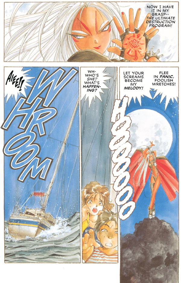 With Urd in Terrible Master mode, the goddess once known for simply being wicked hot is now both hot and wicked! Having freed the great Fenrir Wolf, Urd has thereby activated the Ultimate Destruction Program, which promises just what it says . . . unless her sisters Skuld and Belldandy can stop it! Plus, four pages of color, notes, commentary, a message from creator Kosuke Fujishima, and your letters!