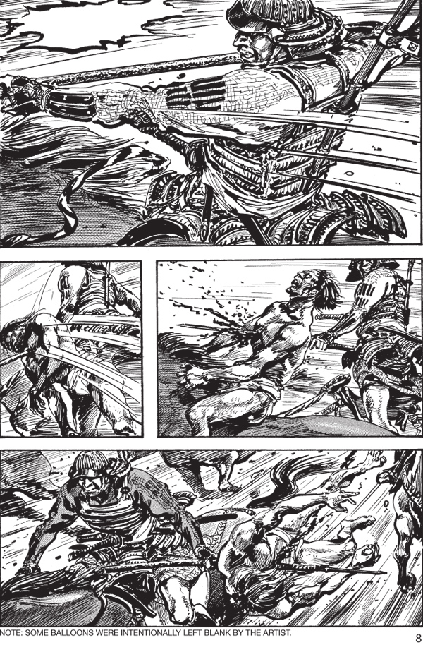 Readers with a taste for Kazuo Koike's gritty Lone Wolf and Cub will go nuts for master gekiga artist Hiroshi Hirata's tome of samurai struggle. Hirata's art and calligraphy leap off the page during scenes of action, only to unfold upon a full bleed that looks like a fine plate print. It's art at its most expressive, accentuating the classic stoic samurai characters you've come to know, only with a little more true society thrown in to help the reader understand what it was really like to be a warrior without a war.