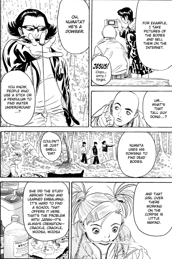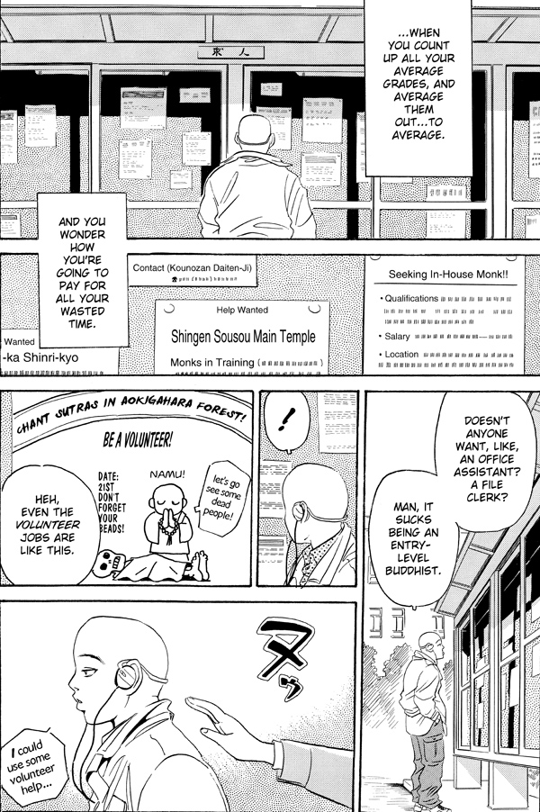 Your body is their business! Five young students at a Buddhist university, three guys and two girls, find little call for their job skills in today's Tokyo . . . among the living, that is! But all that stuff in college they were told would never pay off-you know, channeling, dowsing, ESP-gives them a direct line to the dead . . . the dead who are still trapped in their corpses and can't move on to the next reincarnation.