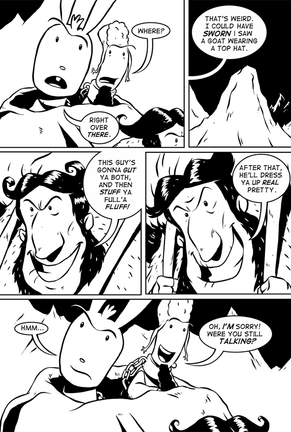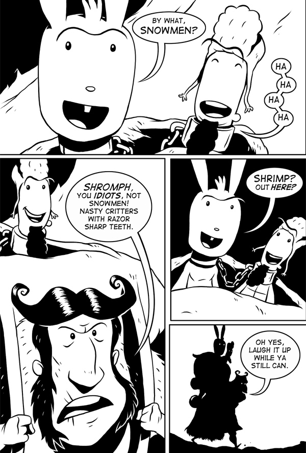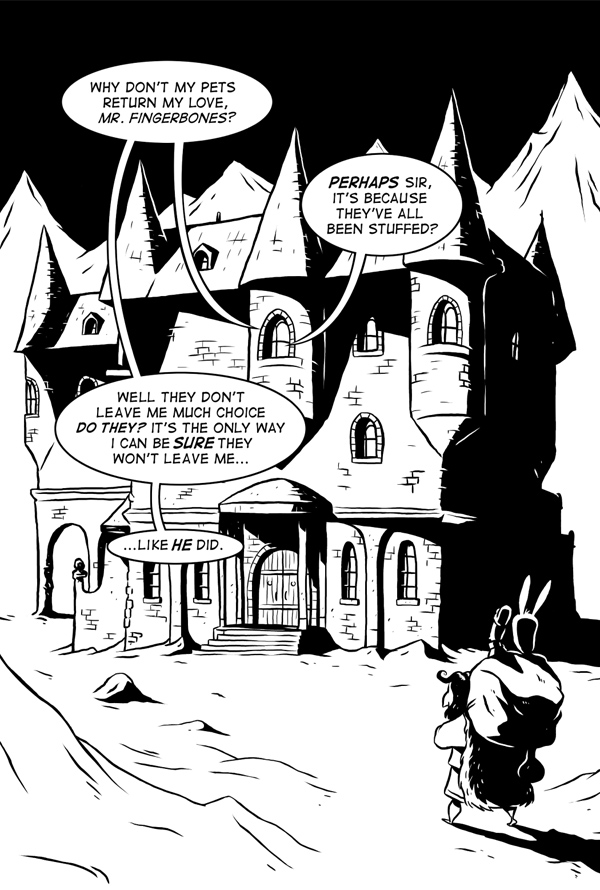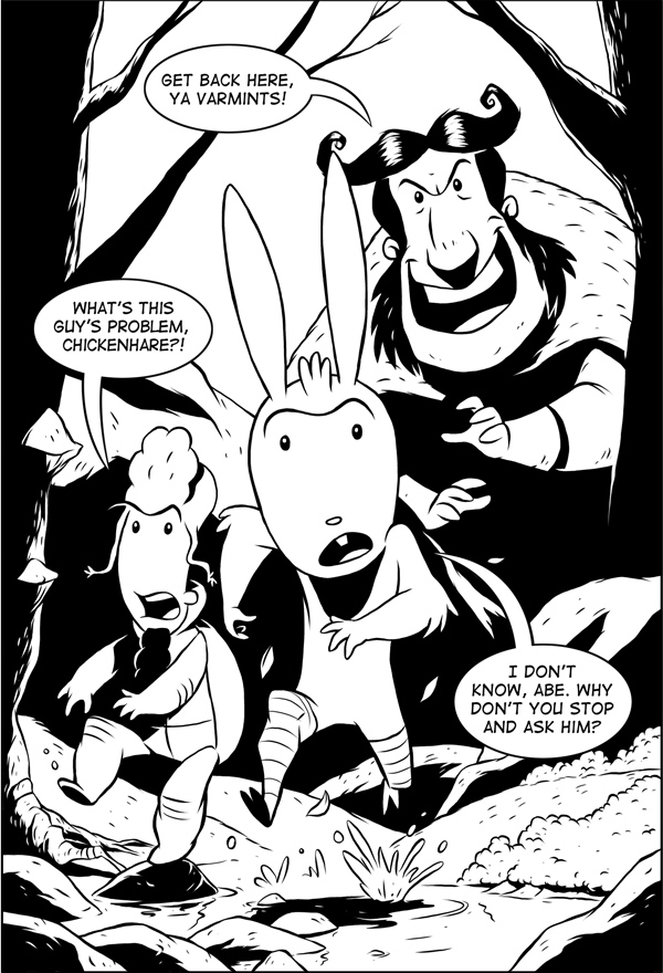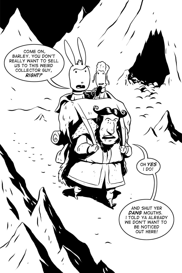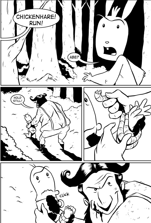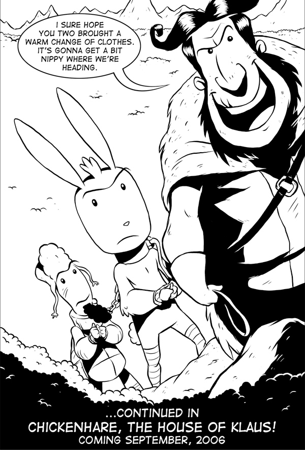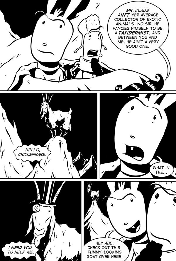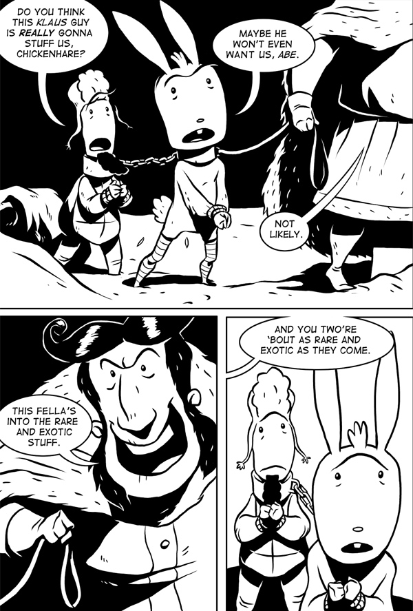 Night is falling on the frozen landscape as Chickenhare and his turtle friend Abe find themselves on their way to be sold to Klaus--an insane taxidermist with a penchant for unique animals and enough emotional baggage to go on a very long vacation.