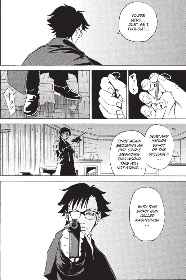 Private detective Reiji Akiba has a theory about those awkward moments and weird coincidences we all encounter in life. They are actually encounters with the dead-their way of sending us a message. But you may not want to open such strange mail from beyond-not unless you can see the ghostly attachment, like Akiba can. And not unless you carry a tool that can kill what isn't alive, like Akiba's sanctified gun Kagutsuchi . . . digging a divine grave to lay to rest the evil dead!