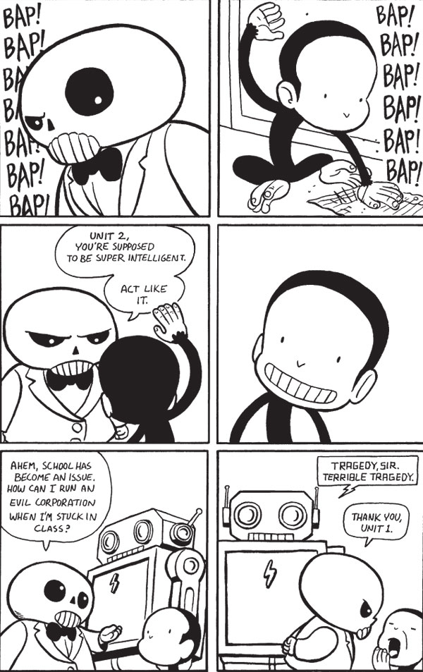Brazen robots! Hostile corporate takeovers! Ill-fated interns! Criminally insane turnips! Distinctly unhelpful helper monkeys! And hats, dear God, hats aplenty! All this and more await any brave soul ready and willing to enlist in the ranks of the Mighty Skullboy Army! How do you sign up, you ask? Just purchase this book, absorb its nefarious bounty (we recommend using the eyes-to-brain method), and say hello to your new lord and master, Skullboy! If he's not home from elementary school yet, be sure to pick up a handy pager. You will be called upon when needed.