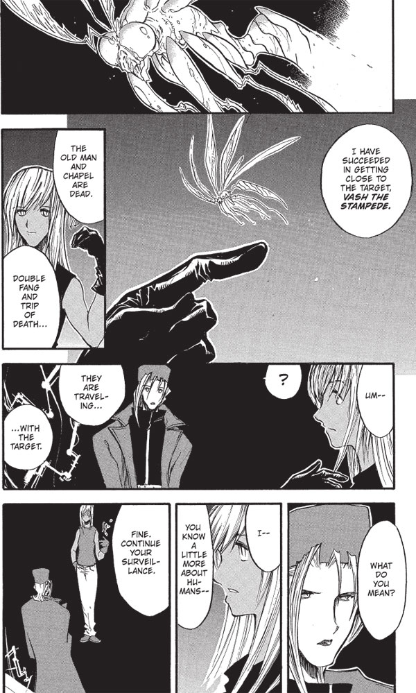 With so many intense scenes and watershed moments taking place in volume eleven of Trigun Maximum, it's next to impossible to write descriptive solicitation text. But readers have come to expect excellent action coupled with dramatic tension and timely comic relief from Yasuhiro Nightow, and volume eleven exceeds expectations. This volume is titled "Zero Hour." That means everything is climbng steadily to a crescendo, and you won't want to miss what lies in store for the people of the planet Gunsmoke.