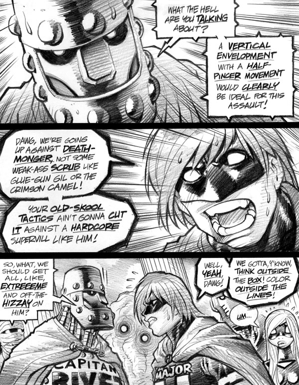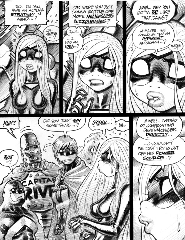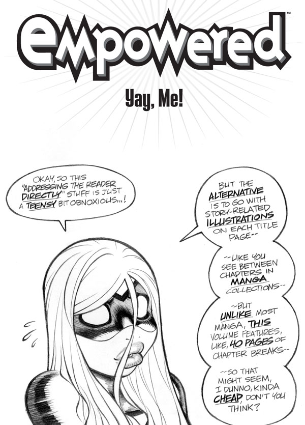 Not only is costumed crimefighter "Empowered" saddled with a less-than-ideal superhero name, but she wears a skintight and cruelly revealing "supersuit" that only magnifies her body-image insecurities. Worse yet, the suit's unreliable powers are prone to failure, repeatedly leaving her in appallingly distressing situations . . . and giving her a shameful reputation as the lamest "cape" in the masks-and-tights business. Nonetheless, she pluckily braves the ordeals of her bottom-rung superheroic life with the help of her "thugalicious" boyfriend (and former Witless Minion) and her hard-drinking ninja girlfriend, not to mention the supervillainous advice from the caged alien demonlord watching DVDs from atop her coffee table . . .