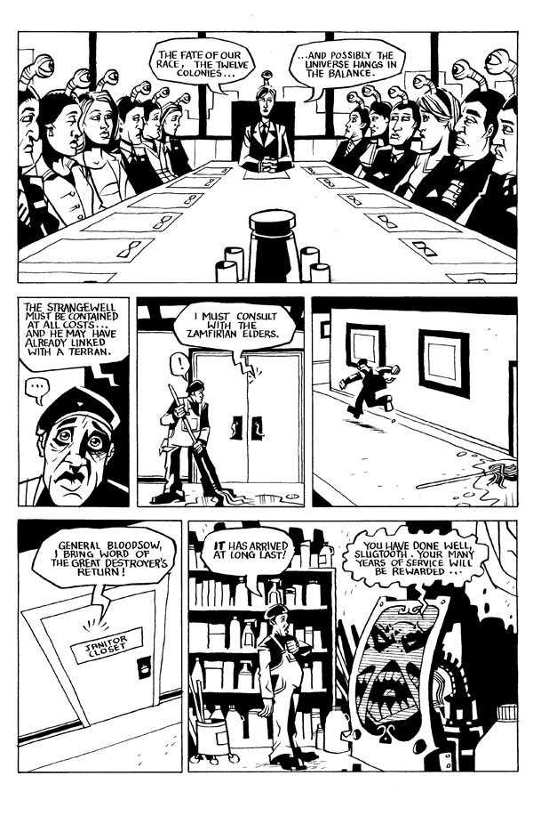 Photographer Anna Gilmour discovers a ten-foot-tall being immediately after his fall to Earth. He can't speak, but communicates through telepathic empathy, and Anna introduces him to her father as "Max." Their home is soon beset by a sea of beatific Tibetan monks, alien assassins in disguise, and heavy weapon fire! Max might not know who he is, but a lot of others sure as heck seem to. A galactic free-for-all is about to go down and Earth is ground zero. Before the final act, Anna and Max encounter a prophecy, the man in the moon, an entire race of alien accountants, and the Revolver-an innocuous-looking jogger responsible for keeping the world spinning. This massive tome is a page-turner you won't be able to put down, and prove that these brothers are a pair to watch!