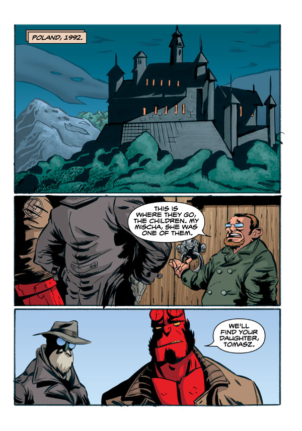 In "The Judgment Bell," written by Jim Pascoe (Kim Possible, Buffy the Vampire Slayer) and drawn by Rick Lacy (Venture Brothers), a figure from Dr. Broom's past wreaks havoc on the children of a small Polish village. And in a backup story written and drawn by Hellboy Animated creator Tad Stones, a young Hellboy is once again stirred to heroism by the radio adventures of Lobster Johnson.