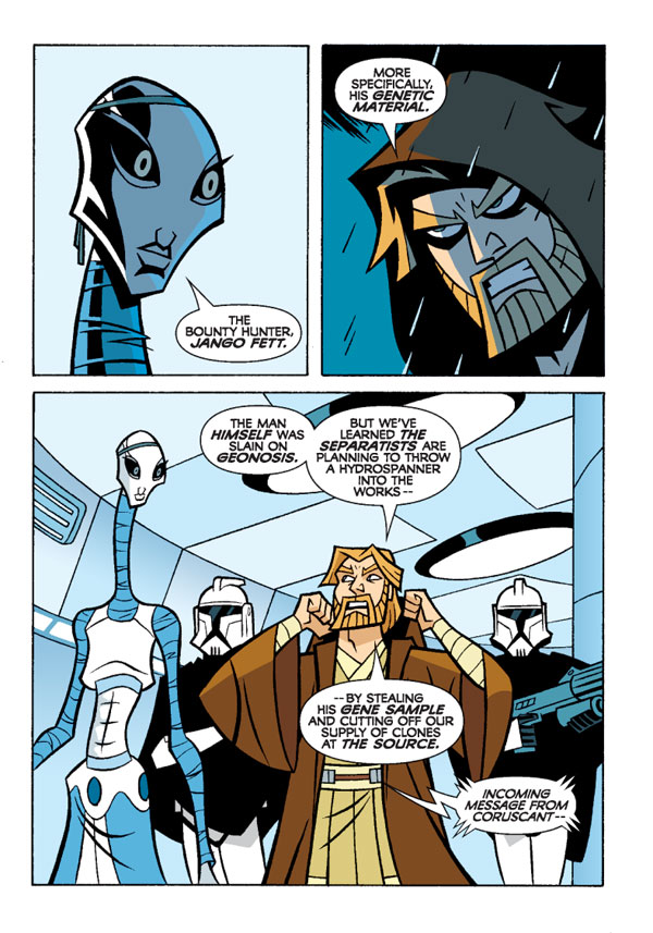A malfunctioning Battle Droid tries to escape its doomed fate on the battlefield; bounty hunter Aurra Sing comes face-to-face with her deadly past; and Obi-Wan Kenobi becomes entangled in a nefarious espionage plot in this pulse-pounding volume of all-ages adventures! Featuring four fantastic tales of Republic versus Separatist action, this bantha-kicking book of blockbuster battles captures some amazing moments in the most exciting era of Star Wars! These totally rocking stories, told in the same stripped-down stylization as Cartoon Network's micro-series, are why everyone loves Star Wars!
