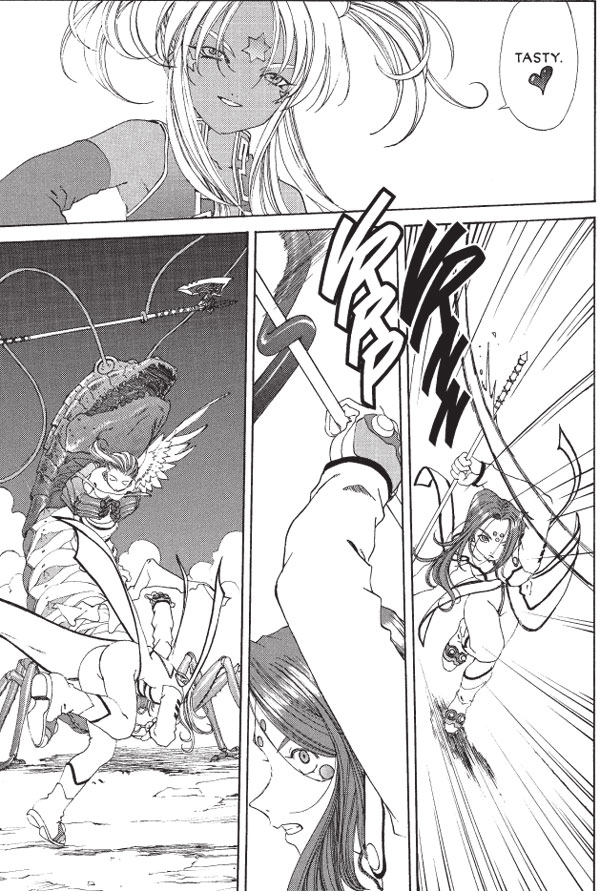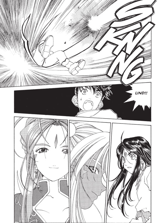 The Devil came down to Tarikihongan! As Lind, the Fifth Goddess battles Hild to defeat the Eater of Angels, it is the weaponless, powerless Keiichi whose heart holds the key to victory. But the lingering Demon Angel within Belldandy is causing her magic to make strange hiccups, and it may be Keiichi again who must serve as the vessel of diabolic forces! Can he succeed without Chihiro finally catching on to the facts of his cosmic love life? Plus notes and commentary, and your letters!